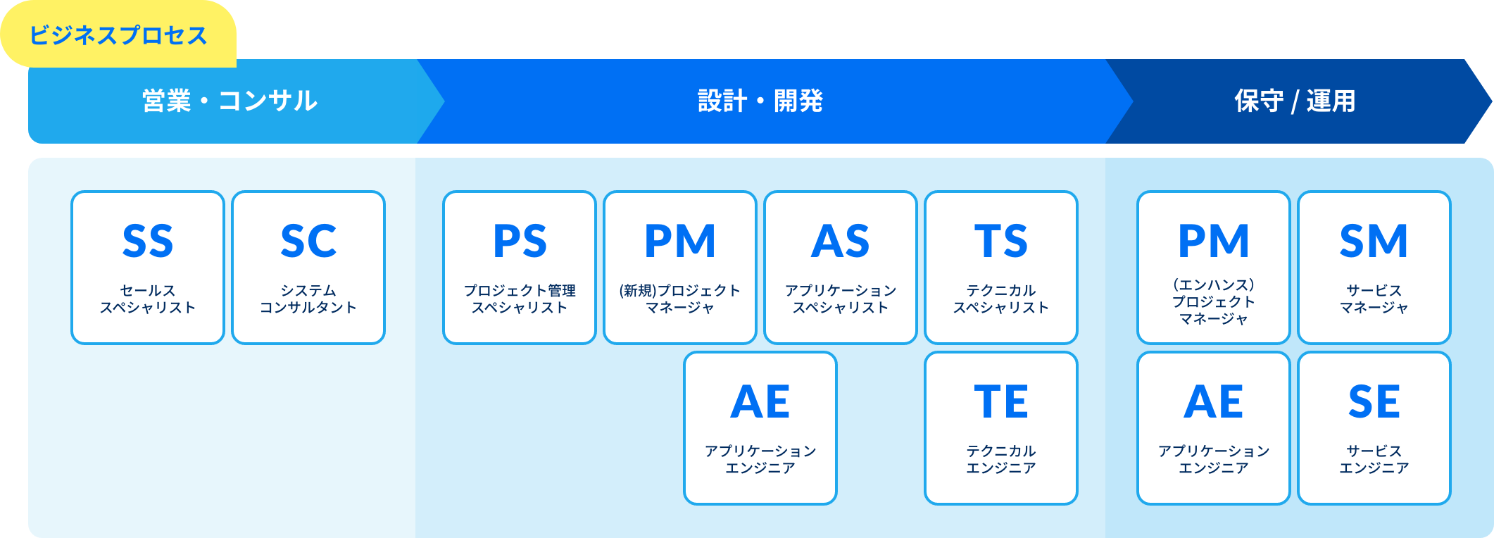 特定業務領域にて業務・システムで高い専門性をもとに、システム構築・維持を推進する。